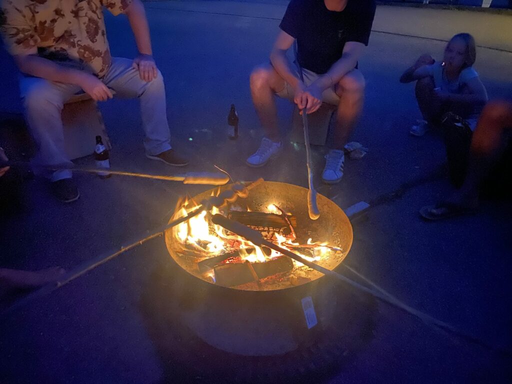 Unser Grillmeister zauberte köstliche Gerichte, die nach Sommer schmeckten. Als die Sonne langsam unterging, entzündeten wir ein stimmungsvolles Lagerfeuer. Gemeinsam genossen wir die wohlige Atmosphäre und aßen Stockbrot.